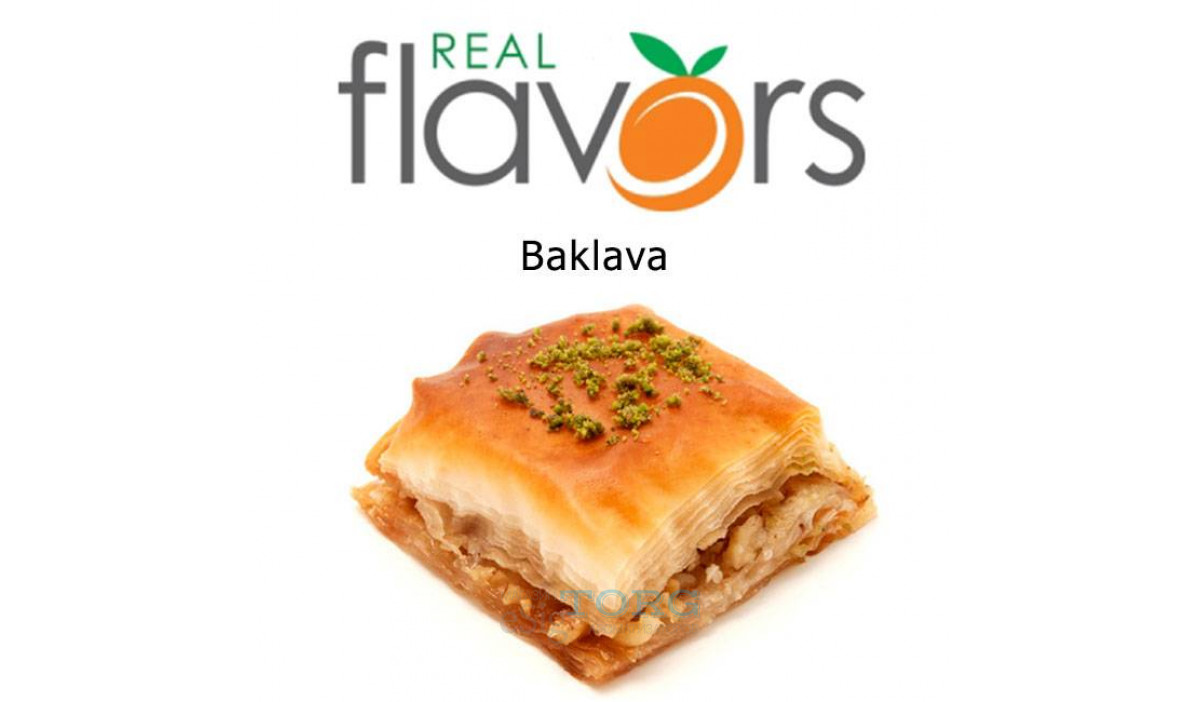 Baklava Super Concentrate — вкус сладкой пахлавы. Этот традиционный восточный десерт отличается очень и очень большой сладостью. Во вкусе: слоеное тесто, масло, грецкие орехи, сироп и фисташки… Настоящее гастрономическое путешествие! Рекомендуется смешиваяать арому Baklava SC Real Flavors в следующих пропорциях: 1-2% (соло) и от 0,3 до 2,5% (в рецептах).